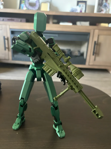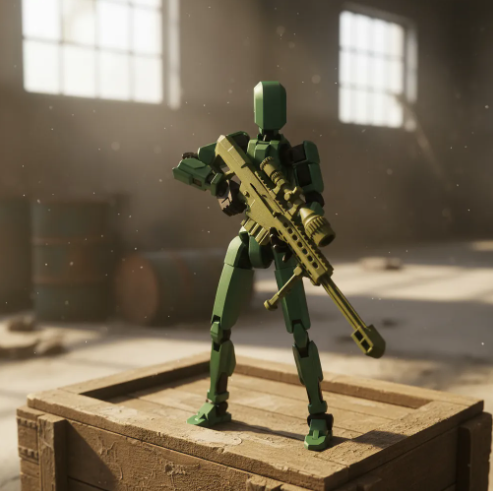 Articulação Total: Pontos de movimento fluidos que permitem recriar poses complexas de um atirador de elite.